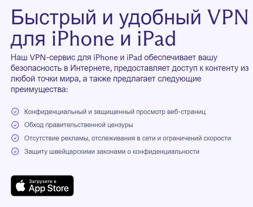 Установка Proton VPN на устройства от Apple не отличается от аналогичного процесса на Андроид. Для этого, вы должны посетить сайт Proton VPN либо отыскать сервис через AppStore.